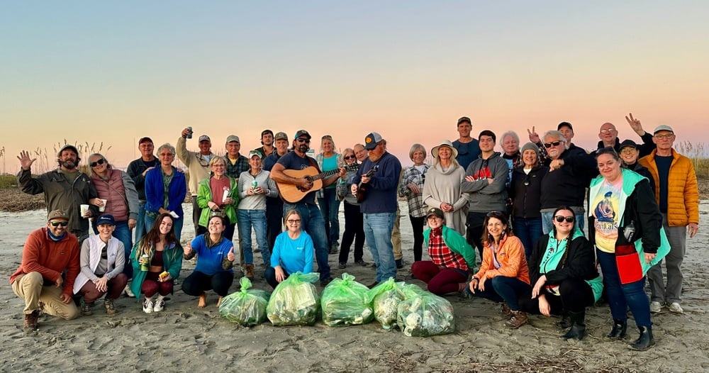 We will depart from the Isle of Palms Marina and head up the intracoastal waterway to Capers Island State Heritage Preserve, guided by a naturalist who will entertain you with their knowledge about the ecosystem and wildlife encountered along the way. We will focus our hour-long cleanup on the shell banks and hammock islands where litter washes up during higher tides. Following our cleanup, we will head to Capers Island for a Lowcountry boil, A.K.A. Frogmore Stew, full of fresh local shrimp, potatoes, smoked sausage, onions and corn prepared on the beach. Our return cruise will be timed with the sunset over the salt marsh!